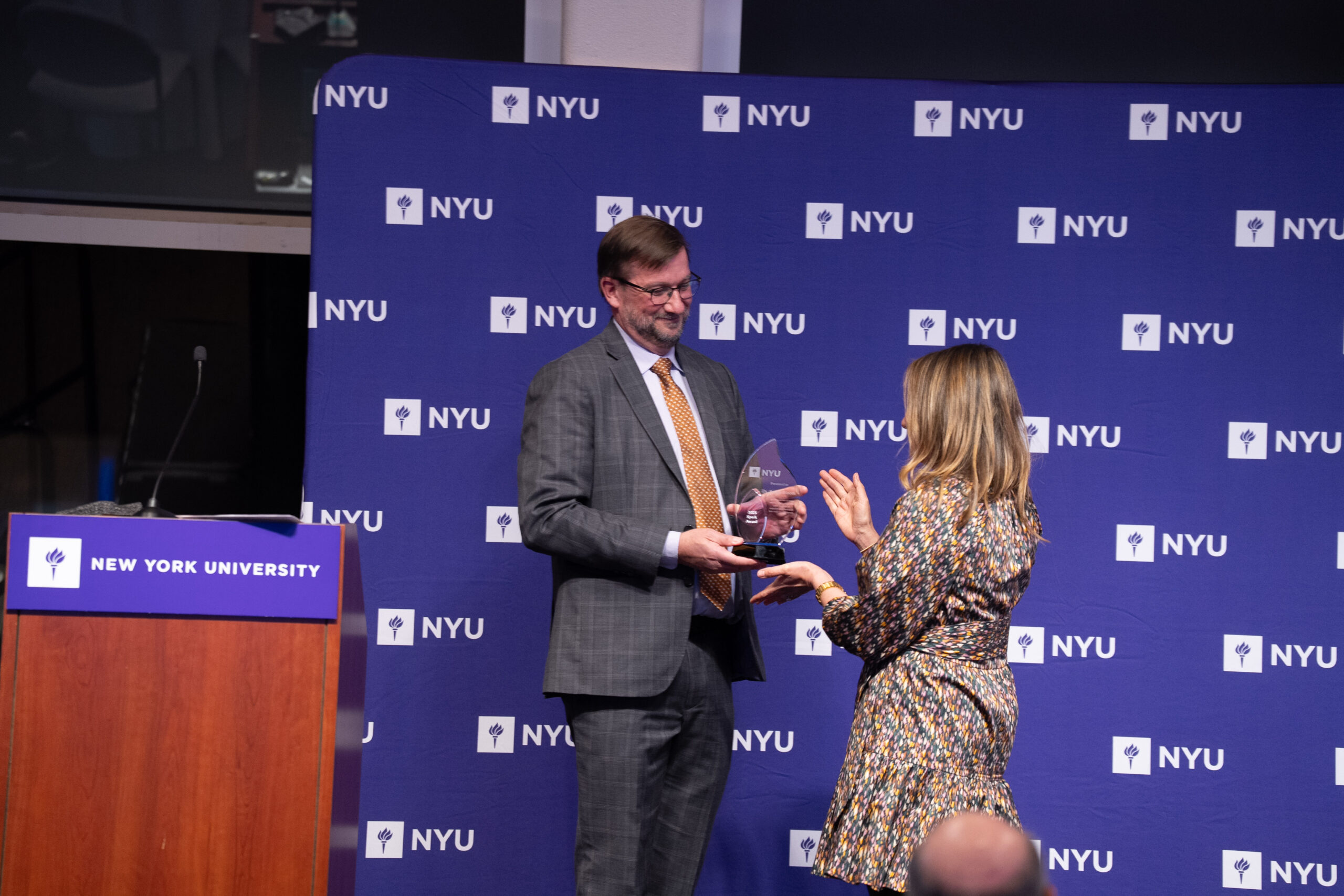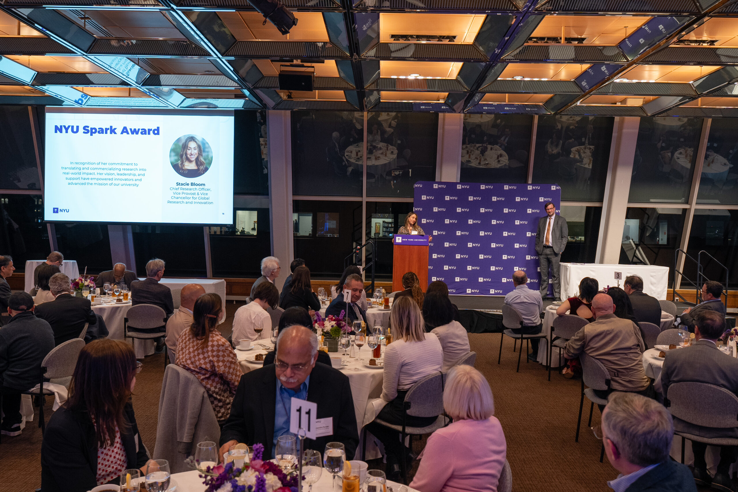 This year, NYU presented the inaugural NYU Spark Award to Stacie Bloom, NYU’s chief research officer and vice provost & vice chancellor for global research and innovation. The award was created to recognize members of the NYU community who champion innovation and entrepreneurship and who advance the translation of research into real-world impact.