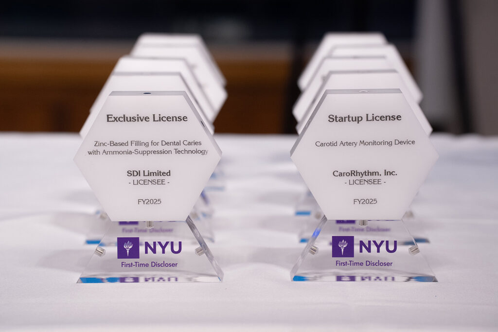 Hosted by NYU’s Office of the Vice Provost for Research in partnership with Technology Opportunities & Ventures (TOV), the evening brought together leading university innovators, entrepreneurs, and members of the NYU community who champion research translation. Together, attendees recognized the successful commercialization activity of fiscal year 2025 across NYU’s Washington Square and Brooklyn campuses, which resulted in another record year of innovation disclosures, licenses, and new startups emerging from NYU ideas.